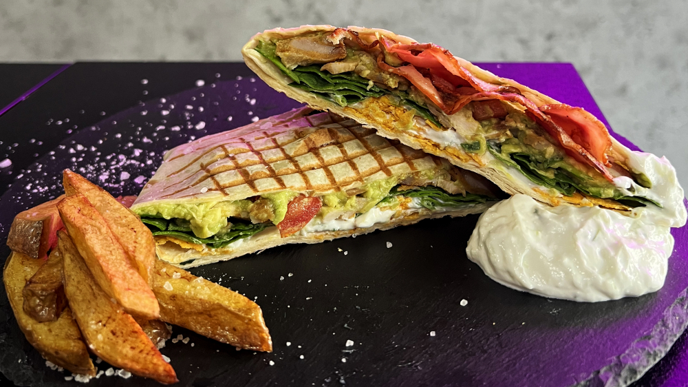 Lipie, carne pui, avocado, cartof dulce, fasole mix, porumb, cașcaval