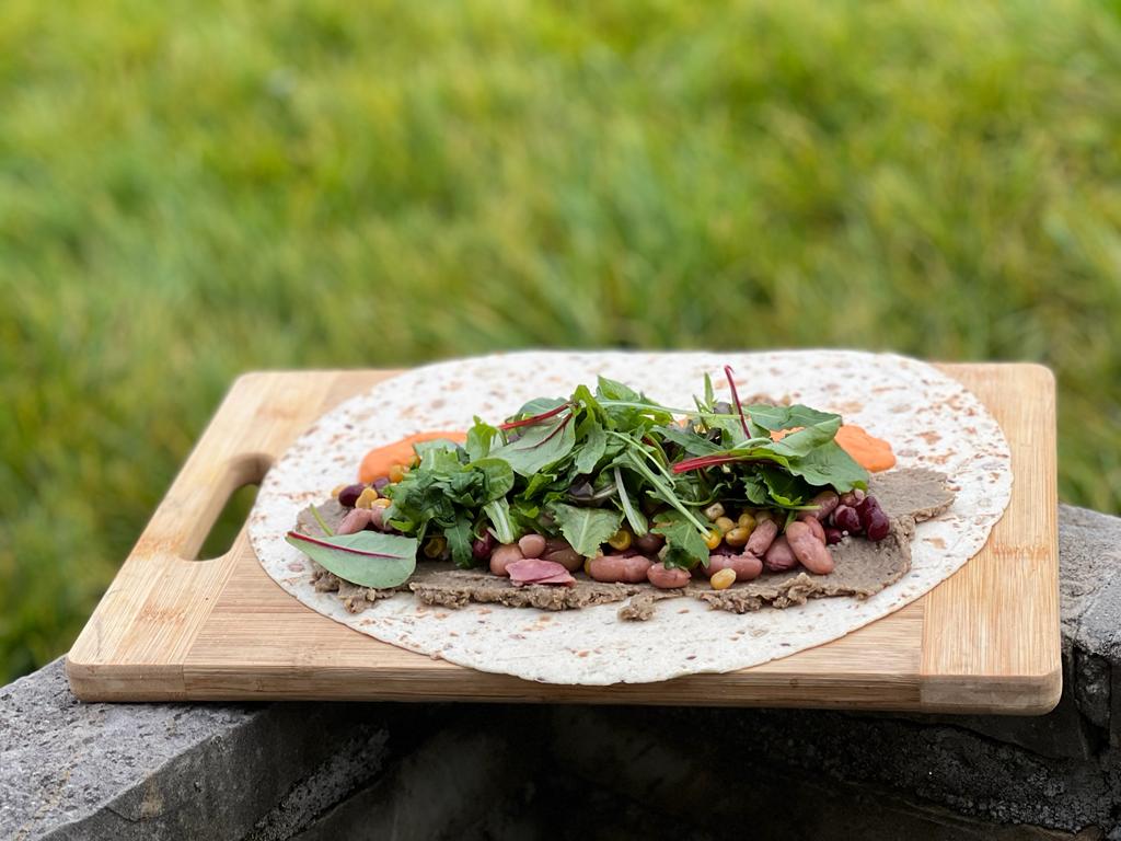 Lipie, linte, fasole mix, porumb, salată mix, sos de ardei copți